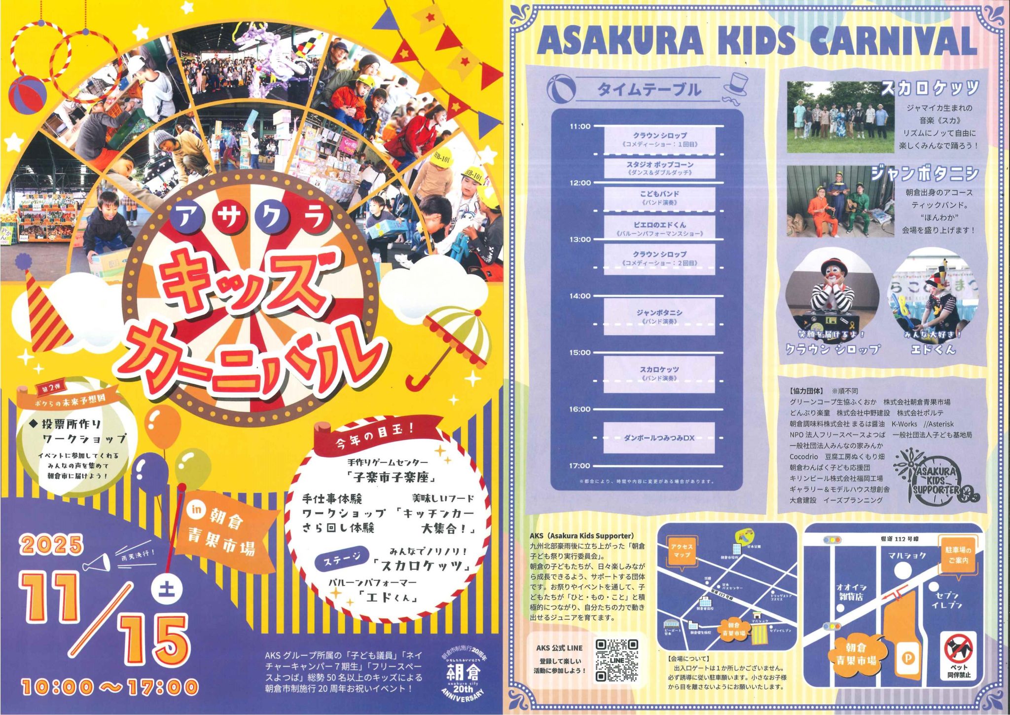 HOME > お知らせ一覧 > 11月15日(土)朝倉市制施行20周年 アサクラ キッズカーニバルが開催されます
